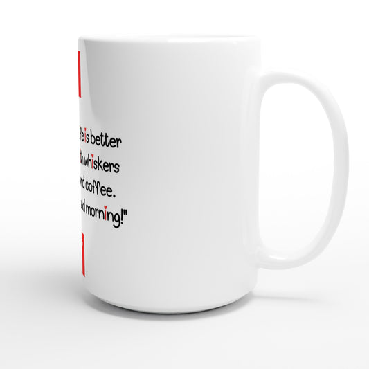 Cat Mug - Life Is Better with Whiskers and Coffee. Good Morning White 15oz Ceramic Mug